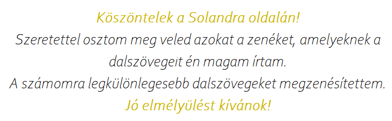 A zenék teljes anyaga - beleértve a dalszöveget - szerzői jogvédelem alatt állnak. A zenék teljes anyagai regisztráltak az Artisjus Jogvédő Egyesületnél. Másolása és kereskedelmi célú felhasználása szigorúan tilos! Másolás vagy engedély nélküli felhasználás jogi következményeket vonhat maga után! Felhasználása kizárólag a szerző beleegyezésével engedélyezett!